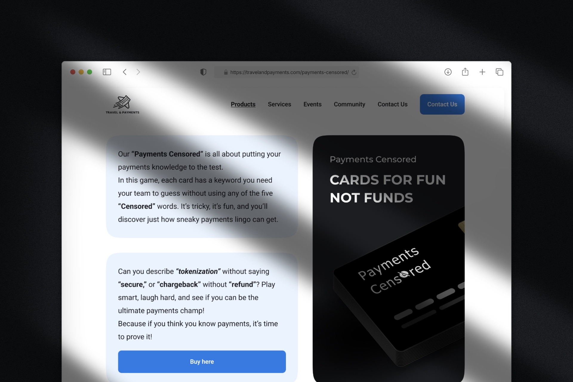 T&P had no online presence, making it difficult for potential clients to discover their services or understand their expertise in the payments consulting space. They also needed a dedicated platform to explain and sell their Payments Censored card game product.
